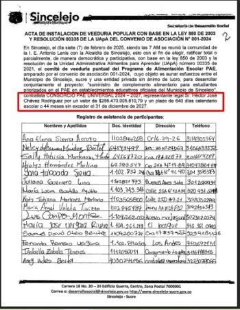 Un nombramiento cuya trascendencia no ha sido meramente formal, pues existe documentación que demuestra no solo su papel administrativo en la ejecución del Programa de Alimentación Escolar —como la conformación de comités de veeduría celebrados entre el 6 y el 12 de febrero de 2025—, sino también su actuación como representante legal ante autoridades judiciales.